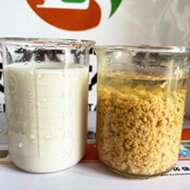 綠森環(huán)保技術(shù)團(tuán)隊(duì)?wèi)?yīng)某化妝品客戶要求上門技術(shù)服務(wù),現(xiàn)場給客戶廢水破乳劑中試。客戶廢水:沐浴露廢水,特點(diǎn):含有乳化劑、增稠劑、抗氧化劑、防腐殺菌劑和香精色素等,廢水顏色:淺黃色。使用破乳劑破乳后廢水上清液清澈透明,如下圖       &nbs···
